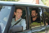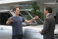 As Dennis is driving along, he spots Mac and Charlie hurriedly running down the street away from the scene of their crime, certain that at least one of the children is dead. Dennis hushes and calms them. He next spots Frank and Dee having crashed the 2018 Range Rover in an intersection and pick them up as well. He dismisses their worries also, ending the episode with the words "You're in the Range Rover now. All is well".