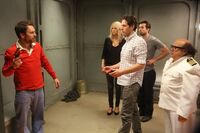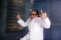When the power returns, they realize the ship has been turned on its side, and the door to the brig is now directly above them. Dennis attempts to organize a human pyramid to try to reach for the door, but Charlie insists it is unnecessary to worry about escape by deeming that they must be all dead already. Charlie theorizes that they all died but have not realized it yet, and being trapped in the brig is their hell or purgatory. When Dennis tries to snap Charlie out of his mania, Charlie attempts to prove that they're already dead by shooting himself with the flare gun.