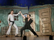 After entering the stage to laughter, Mac and Frank sing "Troll Toll" and Mac makes the "rape" between him and Dennis extremely graphic. The next scene begins, and Dennis transforms into the Dayman and sings "Dayman". He and Mac have their fight scene which is partially improvised. As everybody fumbles their lines and makes mistakes, Charlie gets increasingly upset backstage.